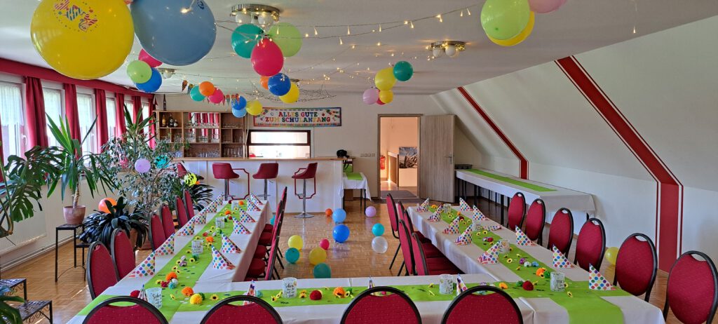 Für größere Gruppen besteht die Möglichkeit im oberen Stockwerk den großen Saal für Veranstaltungen und Feiern zu mieten. Der Saal bietet Platz für 50 Personen und verfügt neben ausreichend Tischen und Stühlen über eine Bar, eine gemütliche Sitzecke und einen großen Flachbildschirm, der auch für die Präsentation von Vorträgen, Filmen oder Fotos genutzt werden kann.
