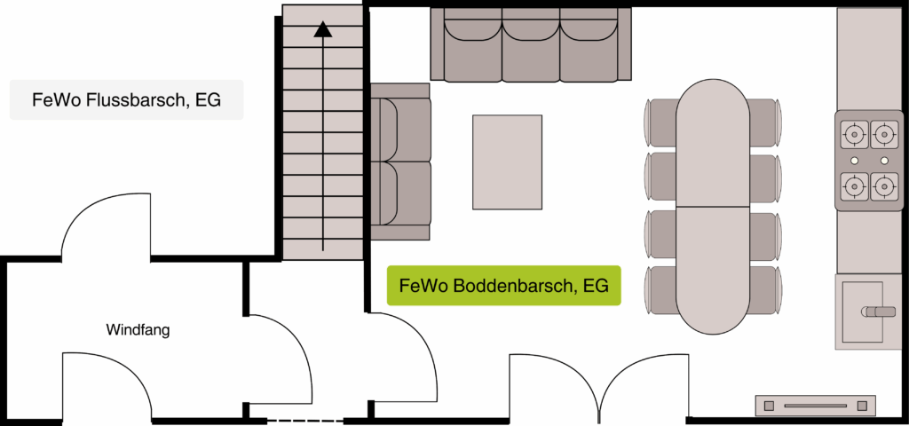 Im Haus “Barsch” befinden sich auf 185qm zwei getrennte Ferienwohnungen für 6 bzw. 7 Personen. Das Haus kann auch gemeinsam von einer großen Gruppe genutzt werden und bietet inklusive Aufbettung max. 16 Schlafplätze.