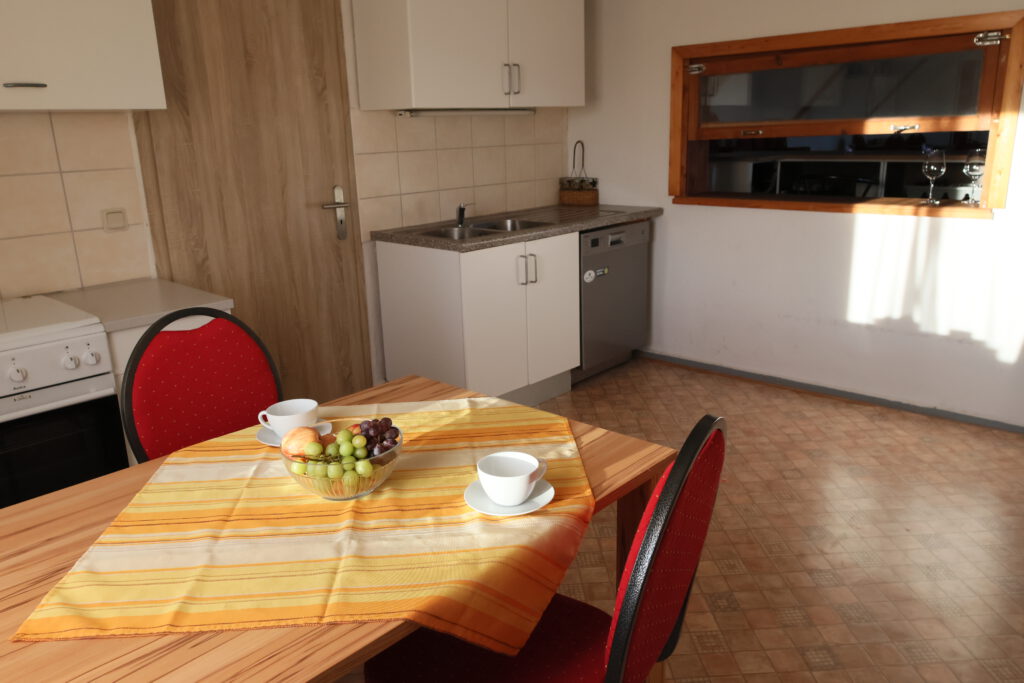 - Komplett ausgestattete Küche mit Geschirrspüler, Gasherd mit Backofen, Kaffeemaschine, Toaster, Wasserkocher, Mikrowelle, Kühlschrank mit Tiefkühlfach