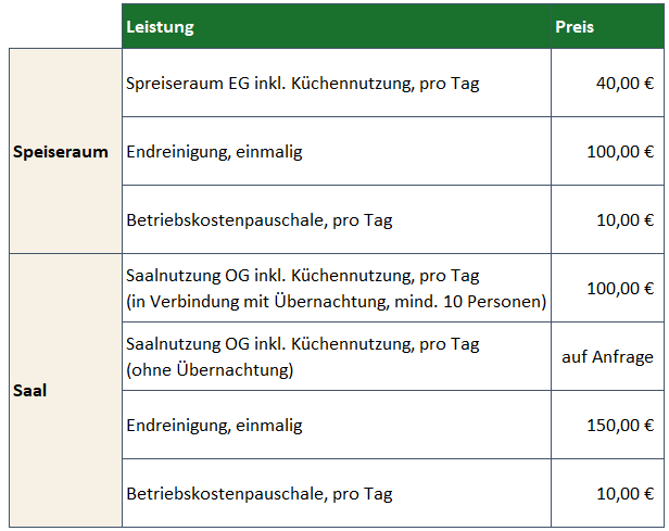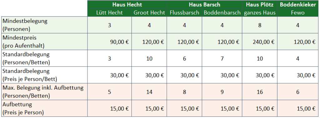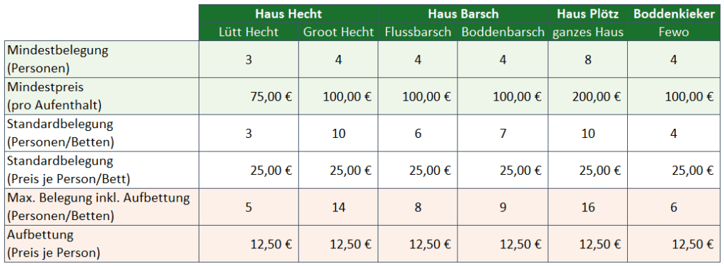 Hauptsaison (d. h. 15.06. – 15.09. ODER 20.12. – 02.01.) ODER verlängertes Feiertagswochenende ODER Aufenthalt < 4 Nächte